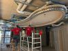 Deckensegel kommen zur Anwendung, wenn man mit einer geringeren Deckenfläche einen hohen Schallabsorptionsgrad erzeugen will sowie haustechnische Installationen eine vollflächige Verkleidung nicht zulassen (z.B. Sprinkleranlage, Be- und Entlüftung). Deckensegel haben zudem auch die Funktion, Räume im Sommer zu kühlen und im Winter mittels Deckenheizung zu erwärmen. Für unser Projekt «Fachhochschule Brugg-Windisch» waren 154 Formen von Deckensegeln vorgegeben, mit einer Grösse von 0.8 m2 bis 16.0 m2, die mittels Stahlleichtbau vor Ort auf eigens angefertigte Schablonen verschweisst wurden (Gesamtfläche der Segel 15'000.00 m2). Die Abschlüsse dieser Deckensegel (gesamt 22'000.00 m) haben wir just-in-time mit unserer Fräsmaschine erstellt und geliefert.